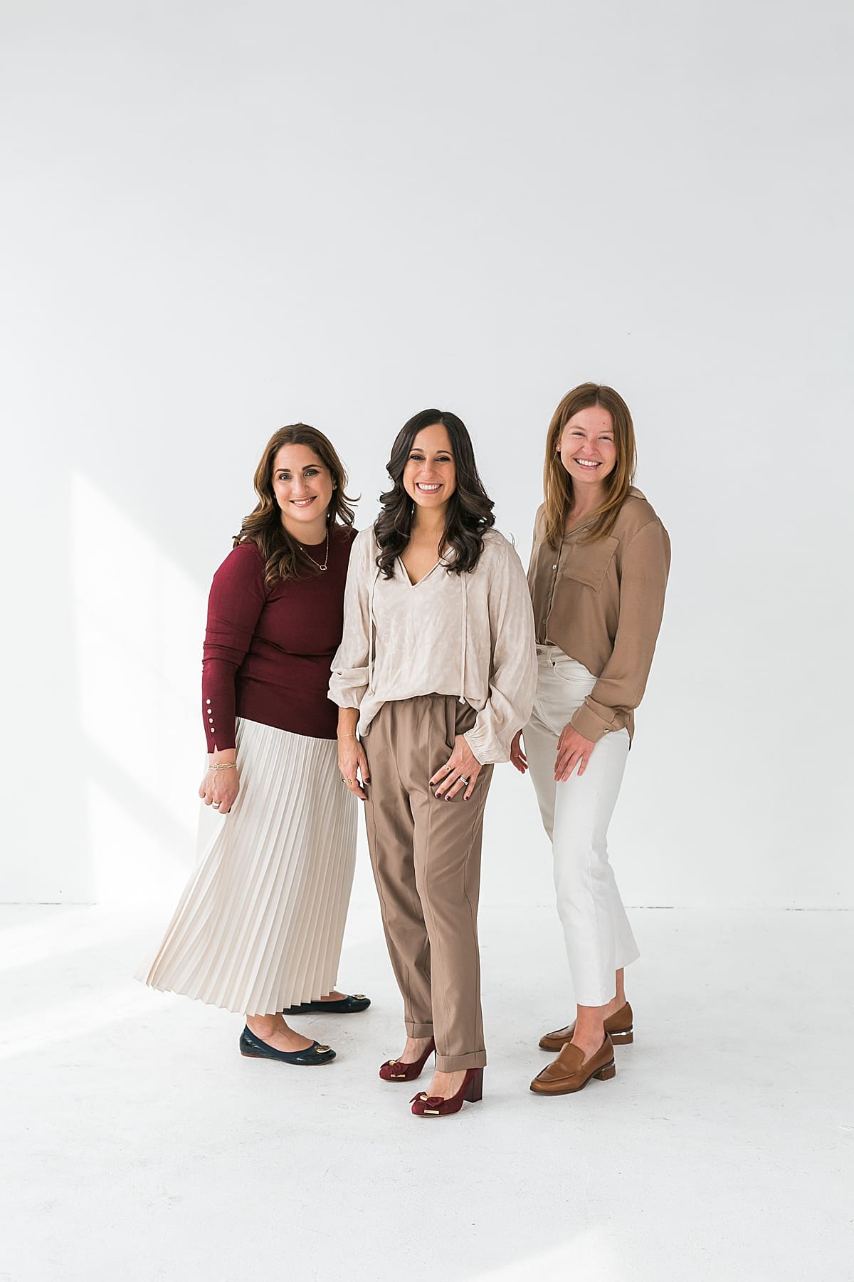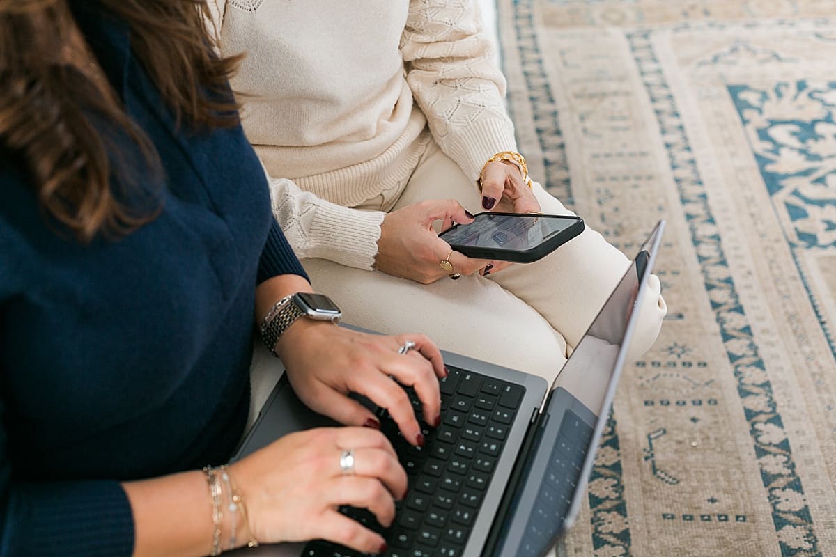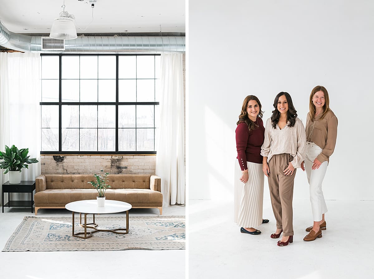 Different from our first session together, we actually rented the location for this brand photo session. For Angela’s session we knew our wishlist included things like a simple backdrop for her team photos. We also needed lots of blank, open space that felt very light and airy for her brand. Lastly, we wanted an area where they could also get some work from home style shots. All of these are realistic for the way her team works and lives, so they were considerations when picking a location.