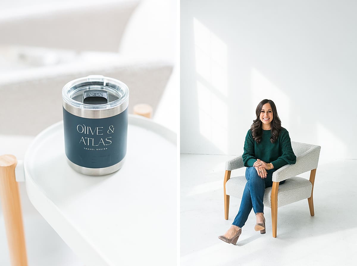 Angela and I worked together for her first lifestyle brand photoshoot back in 2020, when she started her business. She has many years of experience in travel design and is a world explorer! But she decided to strike out on her own when she felt the intuition and pull to change her lifestyle and balance. Angela now has a team working with her at Olive and Atlas, so we did a refresh session with everyone. Travel designer brand photos were even more fun with her whole team there.